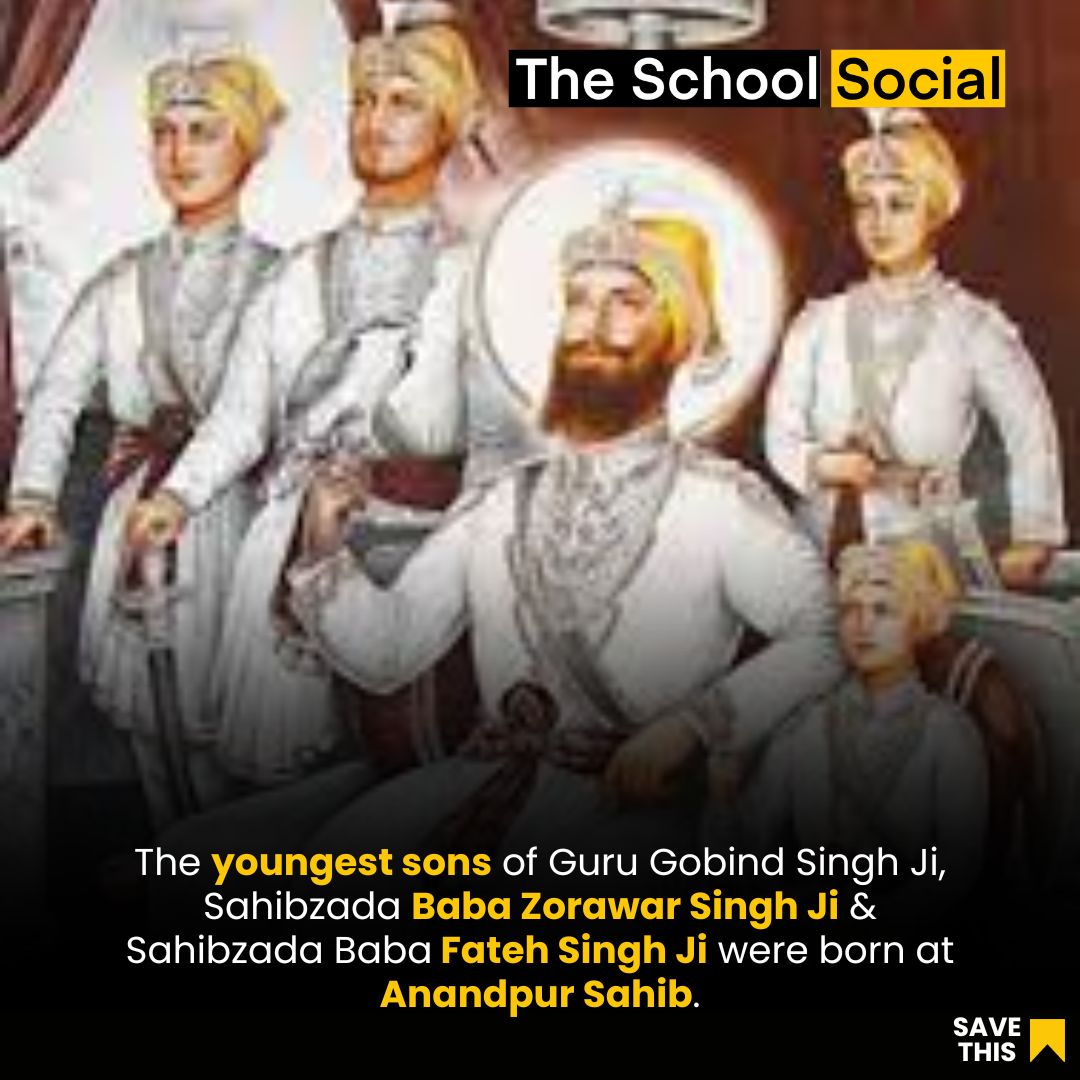Sahibzada Baba Zorawar Singh Ji and Sahibzada Baba Fateh Singh Ji, the youngest sons of Guru Gobind Singh Ji, were born at Anandpur Sahib. Anandpur Sahib, located in the state of Punjab, India, is a significant and historic place in Sikhism. It holds great importance in Sikh history as a place where several events central to the Sikh faith occurred, including the birth of Guru Gobind Singh Ji's sons. The sacrifices of Sahibzada Baba Zorawar Singh Ji and Sahibzada Baba Fateh Singh Ji are remembered and revered in Sikh tradition for their bravery and devotion to their principles.