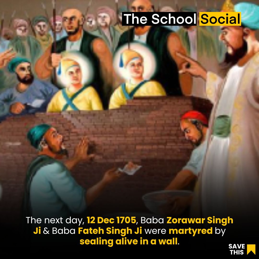 On December 11, 1705, Sahibzada Baba Zorawar Singh Ji and Sahibzada Baba Fateh Singh Ji, the young sons of Guru Gobind Singh Ji, were ordered to be sealed alive in a wall during the oppressive rule in Sirhind. However, as the masonry reached chest-high around their tender bodies, it miraculously crumbled.