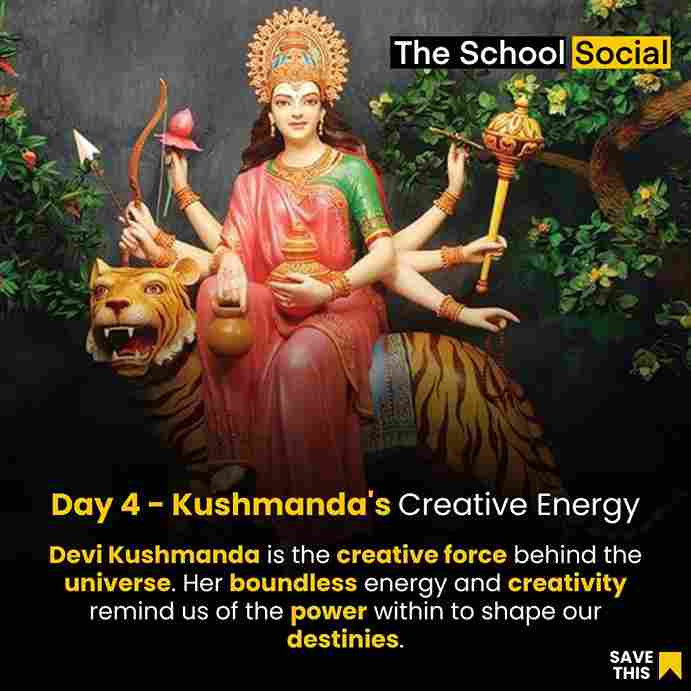 Devi Kushmanda is often depicted with multiple arms, carrying various objects and symbols of power. She is typically shown riding a lion or tiger, and her radiant and warm aura represents the source of all energy and life in the universe. The sun is considered to be a symbol of her divine energy and power, as it provides light and warmth to the world.