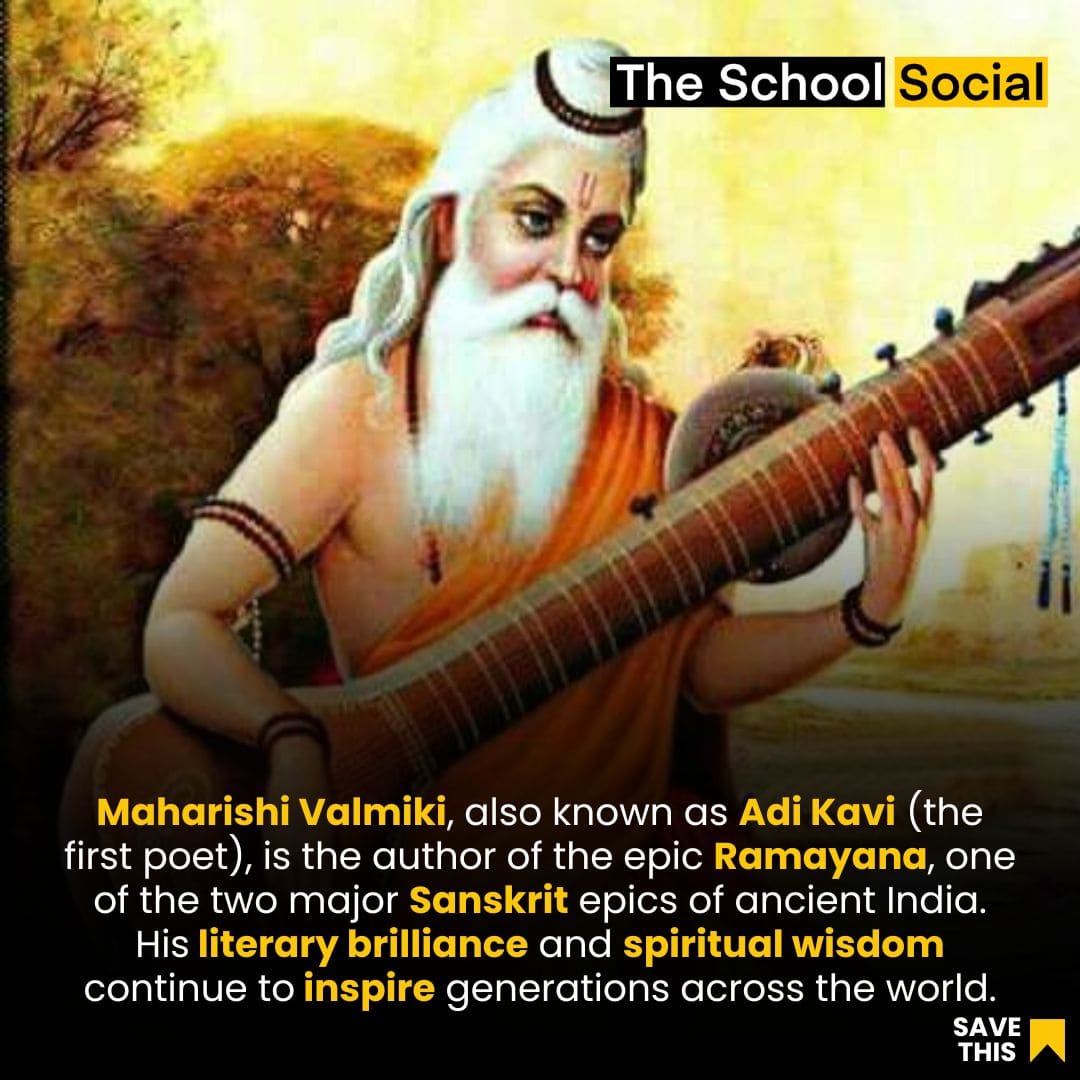 Valmiki is considered as Adi Kavi, which means the "first poet" in Sanskrit. He is highly respected for his significant contributions to literature and spirituality. The Ramayana, attributed to Valmiki, is one of the oldest and most influential epics in Hinduism, recounting the life and adventures of Lord Rama, his wife Sita, and his loyal companion Hanuman. The Ramayana has played a crucial role in shaping the cultural and moral values of the Hindu community.